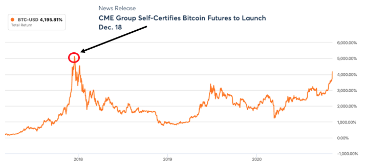 This is the highest Bitcoin has been since $CME launched Bitcoin futures back near the 2017 peak:pic.twitter.com/ccF9bfjP8K
