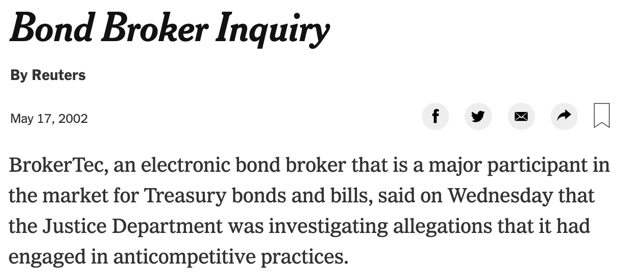 Sources: https://www.nytimes.com/2002/05/17/business/bond-broker-inquiry.html … https://www.ft.com/content/05c4376e-7955-11d9-89c5-00000e2511c8 … https://www.economist.com/finance-and-economics/2001/09/20/carrying-on … https://www.newyorkfed.org/medialibrary/media/research/staff_reports/sr381.pdf …