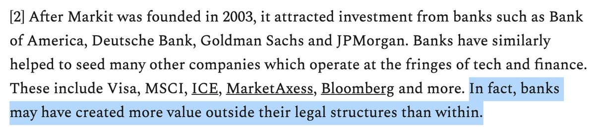 I like this comment near the end - a bank's core business is stodgy & un-sexy, but they're really good at seeding powerful spin-offs:pic.twitter.com/glDhT8v9eo