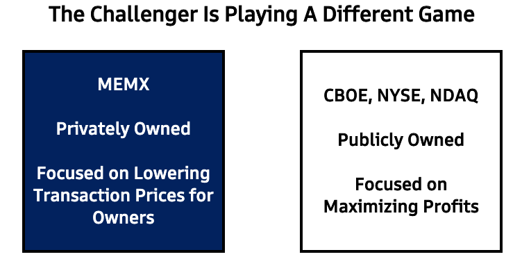 As I listen to public exchanges talk about MEMX, it's becoming clear to me that there are two different games at play. MEMX is NOT focused on maximizing profits like their competitors are. Their goal is better prices for their owners - a 180 from everyone else's strategy:pic.twitter.com/dwwRvclKGg