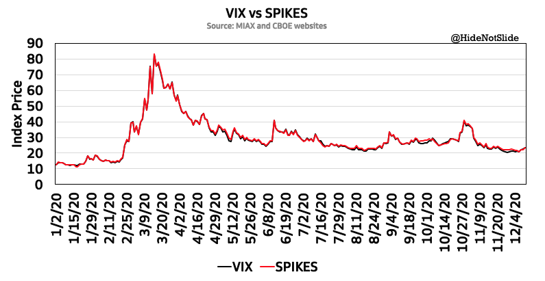 MIAX re-launched SPIKES volatility futures on CME's Globex today. I don't think it will succeed. Why? SPIKES and VIX price action is the exact same. Why go through all the hassle to trade SPIKES when VIX is the same thing?pic.twitter.com/4nALaFaQFx
