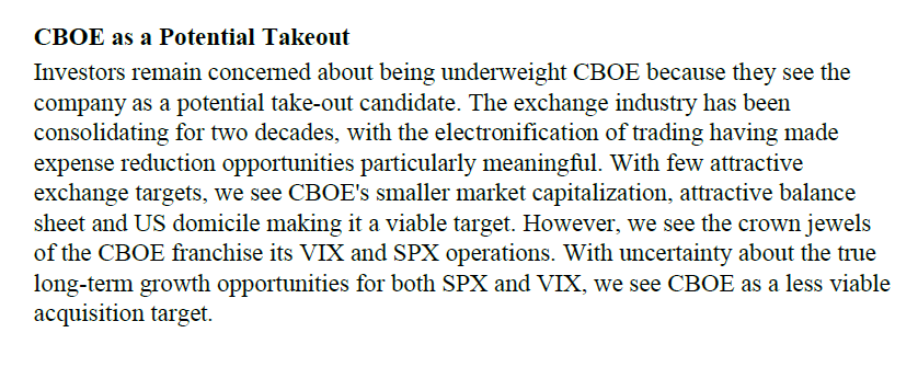 On the last point: seems to be missing the obvious that there could be a "better owner" of the assets (which is often the point of M&A to begin with?) (from JPM's CBOE downgrade)pic.twitter.com/AhDME3NmzS