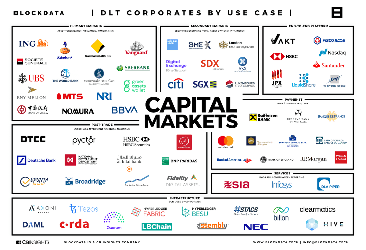 This is a helpful chart segmenting where & how capital markets firms - including many exchanges - are using distributed ledger technology:pic.twitter.com/F1rKAiBBdV