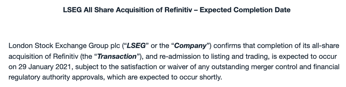 Jan 29 is the day! LSE-Refinitiv deal closure expected in ten days:pic.twitter.com/lo1MGN9yk6