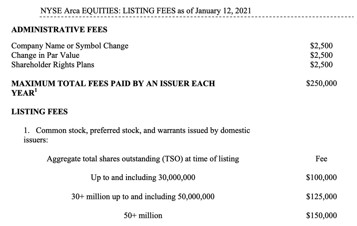 SPACs are treated as a public listing like any other stock. To stay listed on the exchange companies have to pay annual fees varying each year from $100K - $250K and that includes SPACs:pic.twitter.com/PzMAxTfray