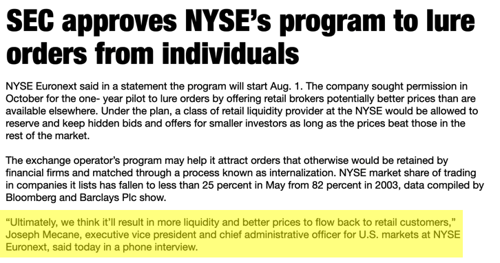 Amidst the financial crisis, Mecane was drawn even closer to the center of Wall Street - working for the exchanges themselves. From 2008 - 2014 Mecane was head of equities at the NYSE, where he tried to wrestle volume away from internalizers like Virtu & Citadel.pic.twitter.com/aaLhajmS2A
