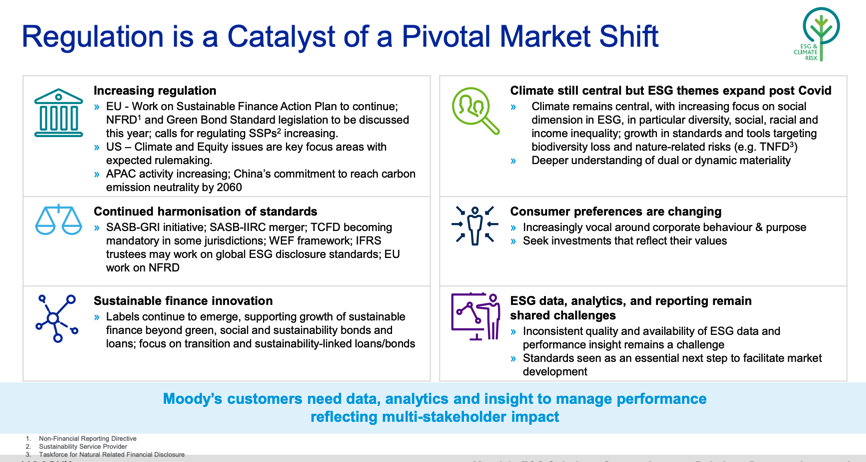 Moody's published an ESG conference presentation today & it's worth a read. They clearly lay out ESG drivers, industry projections & the products they're building to capture growth. #ESGMafia