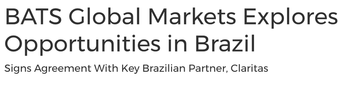 We don't normally hear about Brazil or Latin America when it comes to exchanges, but at one point ICE, CME and BATS were all eyeing serious expansion in Brazil. CME --> equity swap w/BM&FBOVESPA ICE --> 13% stake in clearinghouse CETIP BATS --> Brazilian equities exchangepic.twitter.com/ijXOaVoi03