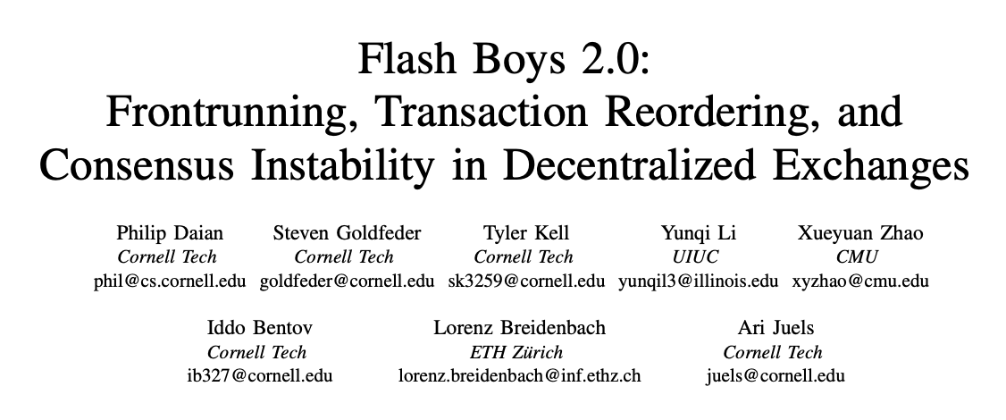 Key takeaways from the paper: - DEXs have some key innovations over legacy finance, but they're not perfect. - Miners have INSANE power in crypto market structure. - As DeFi grows, this kind of HFT arbitrage can begin to hurt the overall blockchain/network at large.