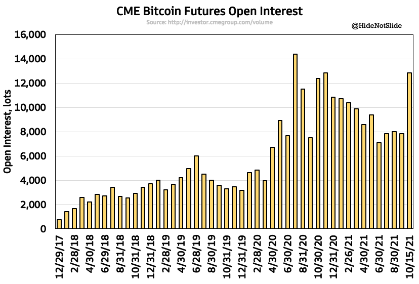 CME's Bitcoin futures OI is near all-time highs on the eve of the ETF launch. I think we could see 20,000 lots of OI by the end of the year or ~$6 billion notional as new $ enters the market.pic.twitter.com/d5Y2NxgNDF