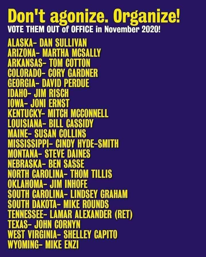 A word about 51/49 Senate votes: EVERY ONE of those 51 Senators is the deciding vote, not just Lamar or Lisa. It's Martha McSally It's Cory Gardner It's Joni Ernst It's Thom Tillis It's Kelly Loeffler It's David Perdue It's Lindsey Graham It's John Cornyn They ALL own this.
