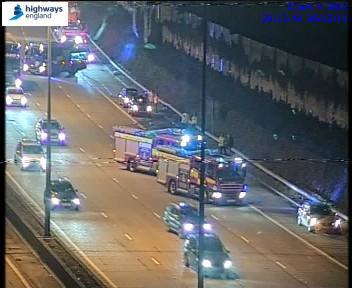 Our officers have managed to move the car to the hard shoulder. All 4 lanes are now open past the scene and delays are beginning to ease on the