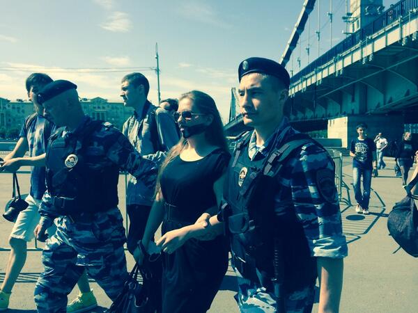 Arrests of bearded women now in downtown Moscow during the banned gay pride manifestations (photo