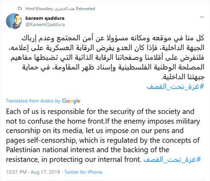 Amnesty relies on "researchers" like @Hind_Gaza who openly advocate self-censorship to support Hamas.https://twitter.com/amnesty/status/1194289553038811136 …