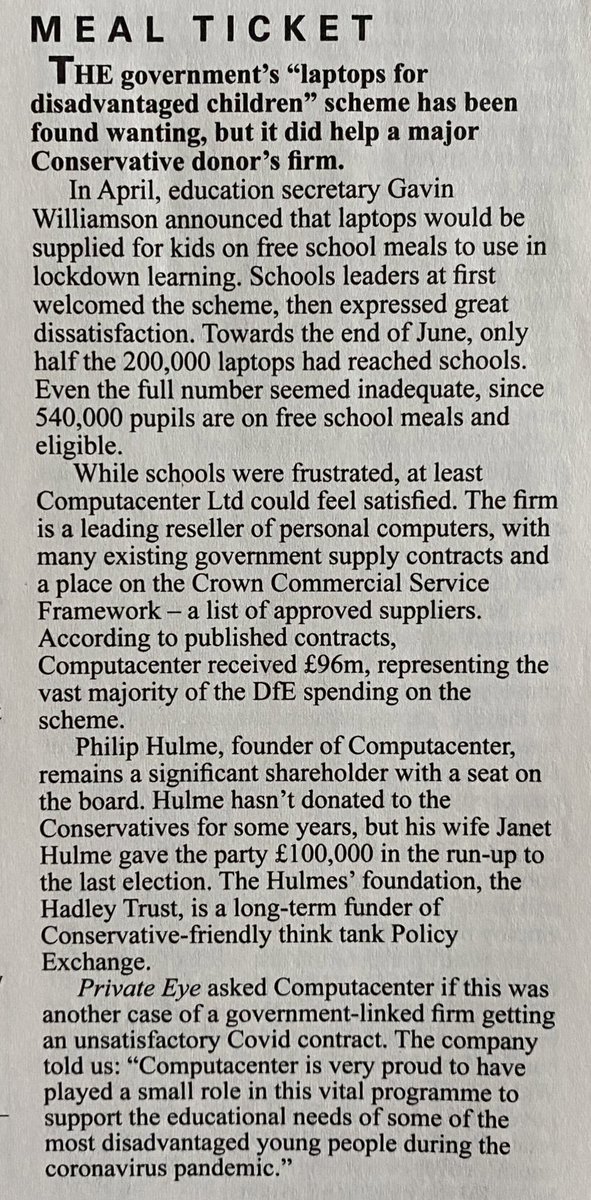 A story of free school meals, Chartwells, the Conservative party, Covid and cronyism continued...pic.twitter.com/SPgoZt9i5x