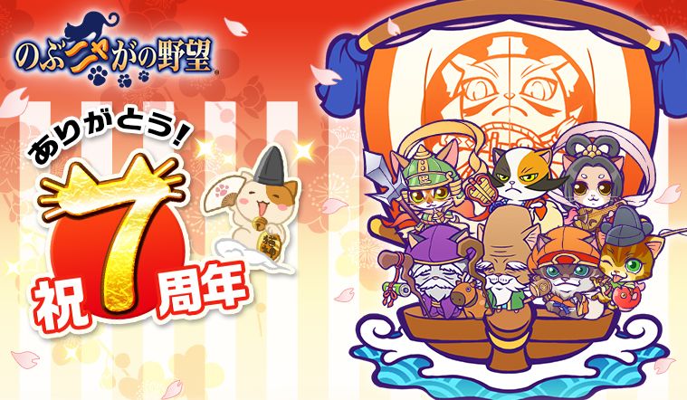【運営】皆様にご愛顧いただきまして『のぶニャがの野望』は2/22 午後2時22分でいよいよ7周年! これを記念して「7周年記念キャンペーン」を開催いたします。 様々なキャンペーンが開催されますのでお見逃しなく!