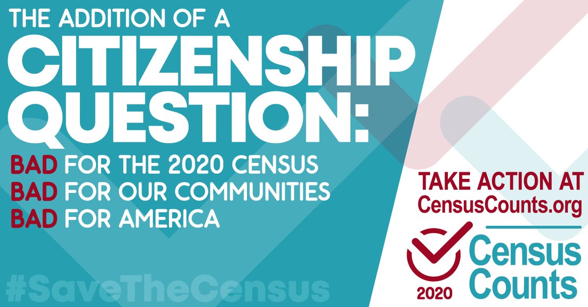 #2020Census citizenship question must not stand. It will jeopardize the accuracy of the count in all communities – an outcome that the nation will have to live with for the next TEN years. Take action today to#SaveTheCensus: http://censuscounts.org pic.twitter.com/JprnLxfBma
