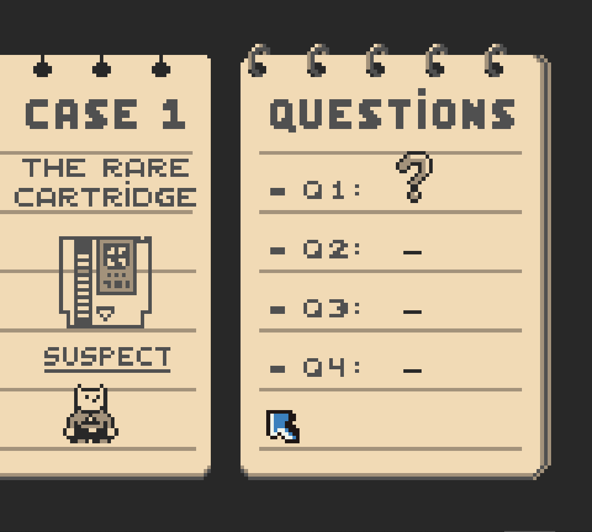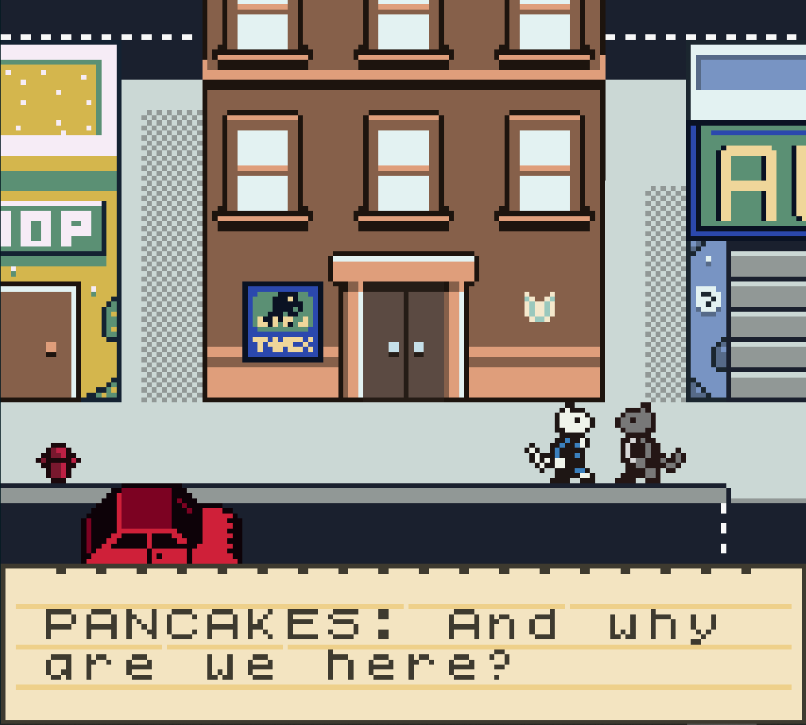 #InspectorWaffles prequel, a detective game for Game Boy Color, PC and probably more. Gather clues, interrogate cats of interest and report to your partner