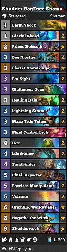 Ingenious new Shudderwock Shaman. Uses Faceless Manipulator to make copies of Shudderwock, now that Saronite Chain Gang was nerfed.