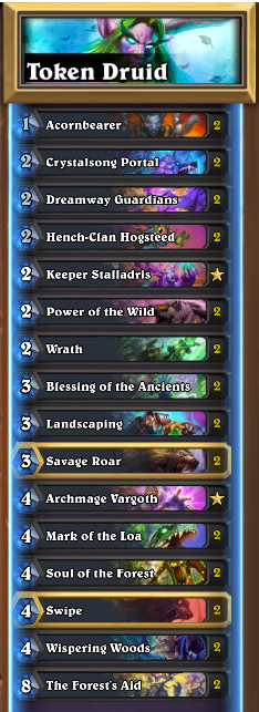 Hit Legend with this Token Druid going 10-2. Control Warrior, Tempo Rogue and Token Druid are the only Tier 1 decks atm if you are trying to figure out the best deck to climb with.pic.twitter.com/uQPf08N4th