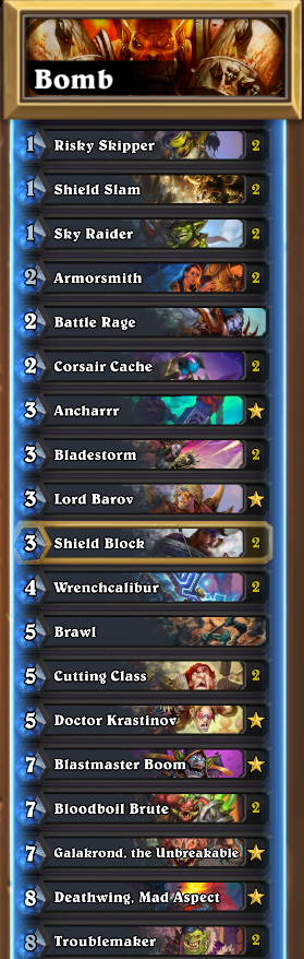 I’ve like athletic studies in bomb warrior if you want to try that instead of Galakrond if you’re wanting to replace it
