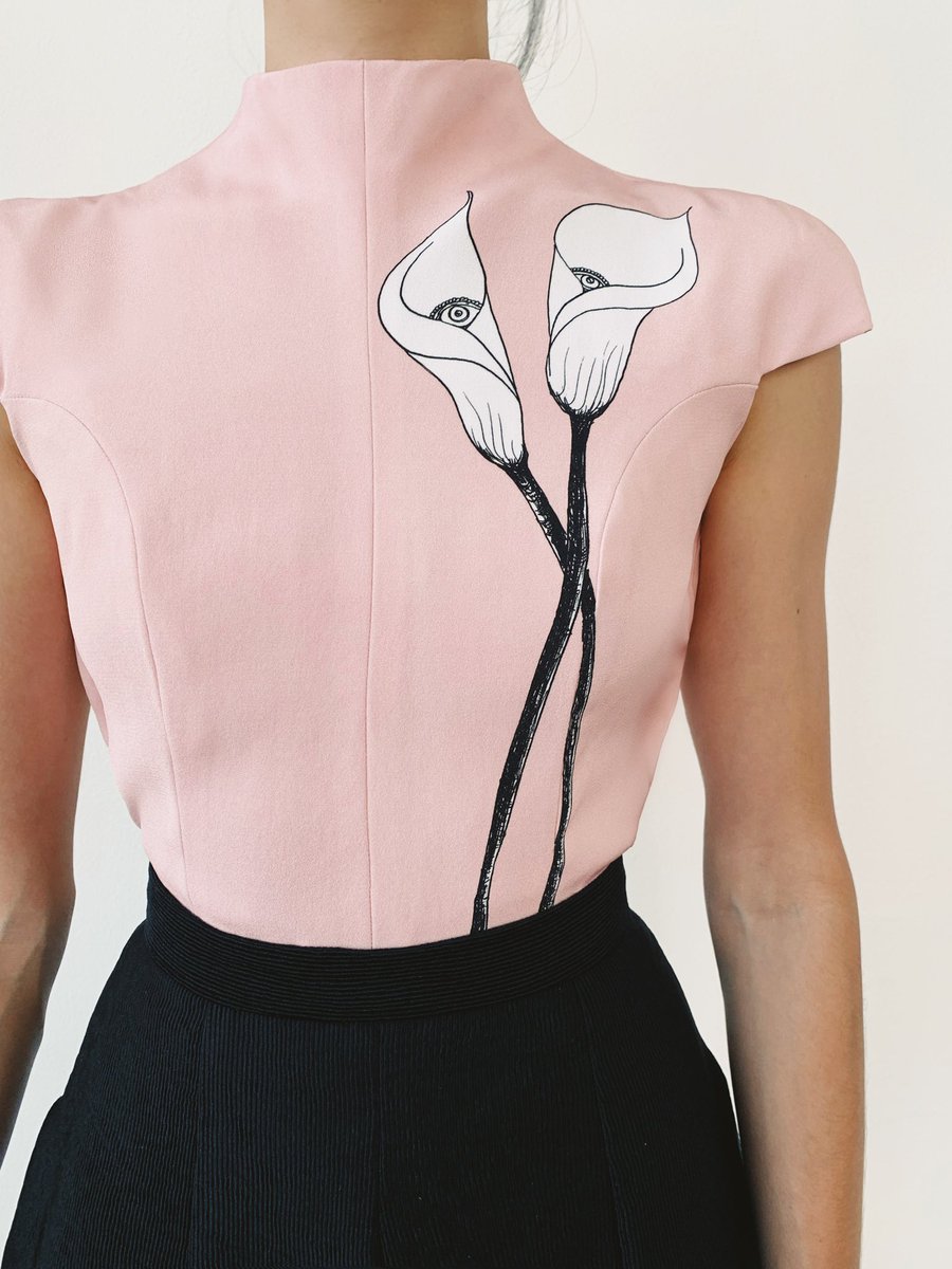 #HoganMcLaughlin#ss20 details- blush pink silk crepe top featuring ‘Lillies’ illustrated by@bill_crisafipic.twitter.com/uzg22gRmw6