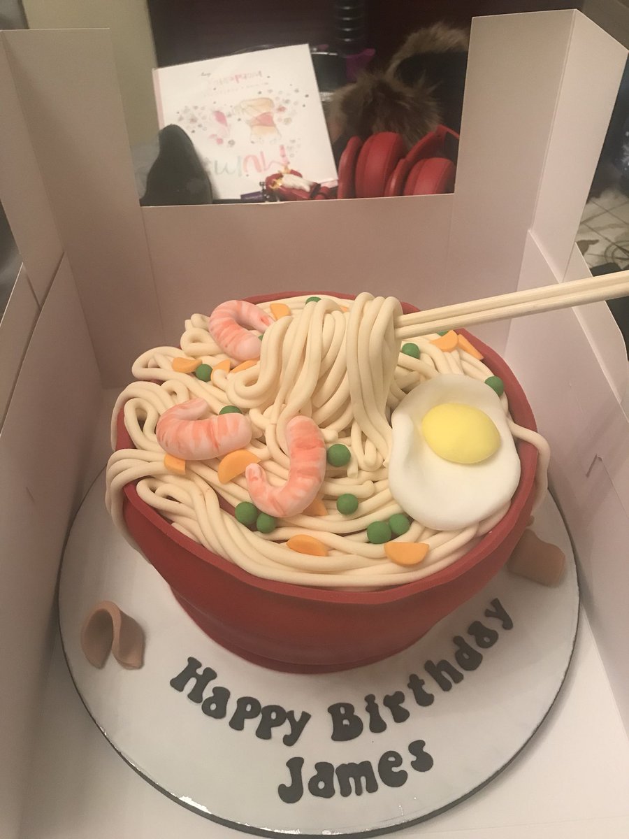 Omg. Omg. Omg. Omg. Omg. My mother has done it again. BIRTHDAY RAMEN CAKEpic.twitter.com/seyet6QyJn