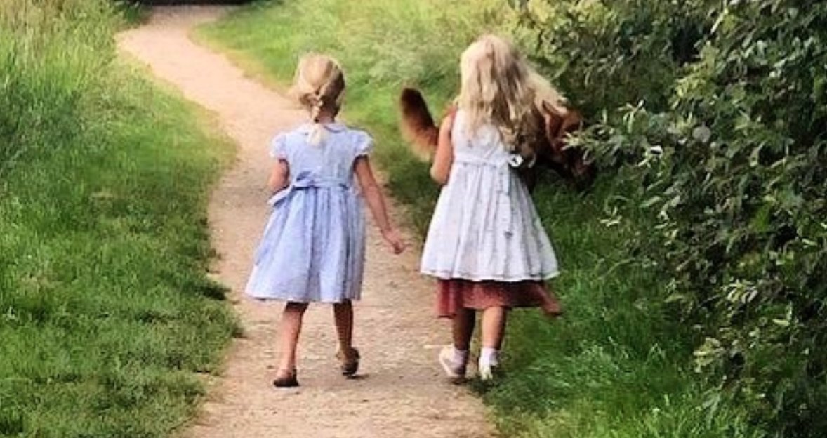 Love this photo of Etta and her cousin Eva-Deia having a pleasant stroll and a chat this past summer. No idea who's dog Eva-Deia is carrying!