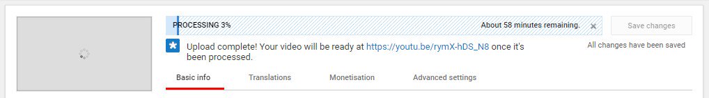 my video took 5 minutes to upload... but says 50+ minutes to process?! @TeamYouTubepic.twitter.com/CkNDCzoJNZ