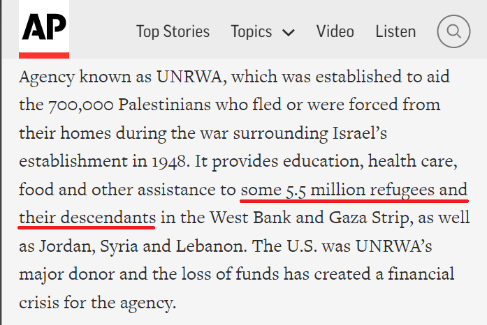 You're letting @AP off the hook: "5.5m refugees and their descendants" could easily be understood as 5.5m refugees plus their descendants.