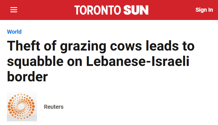 @Reuters headline ("Lebanese herders, Israeli military row over cows grazing near border") changed to make an allegation appear to be a fact,@TheTorontoSun? P.S. Slow news day, anyone?pic.twitter.com/liN8fd2c4m