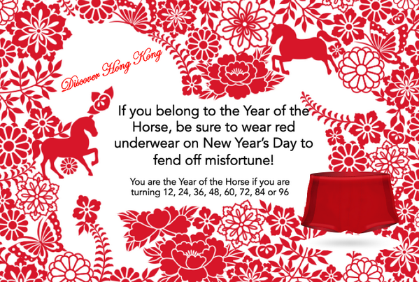 Red underwear tomorrow is a must for those born in the #YearOfTheHorse in order to fend off misfortune! #CNY2014pic.twitter.com/pfhmOTCM6o