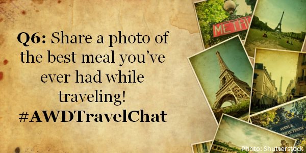 Q6: Share a #photo of the best meal you’ve ever had while #traveling! #AWDTravelChatpic.twitter.com/8aFPR8g714