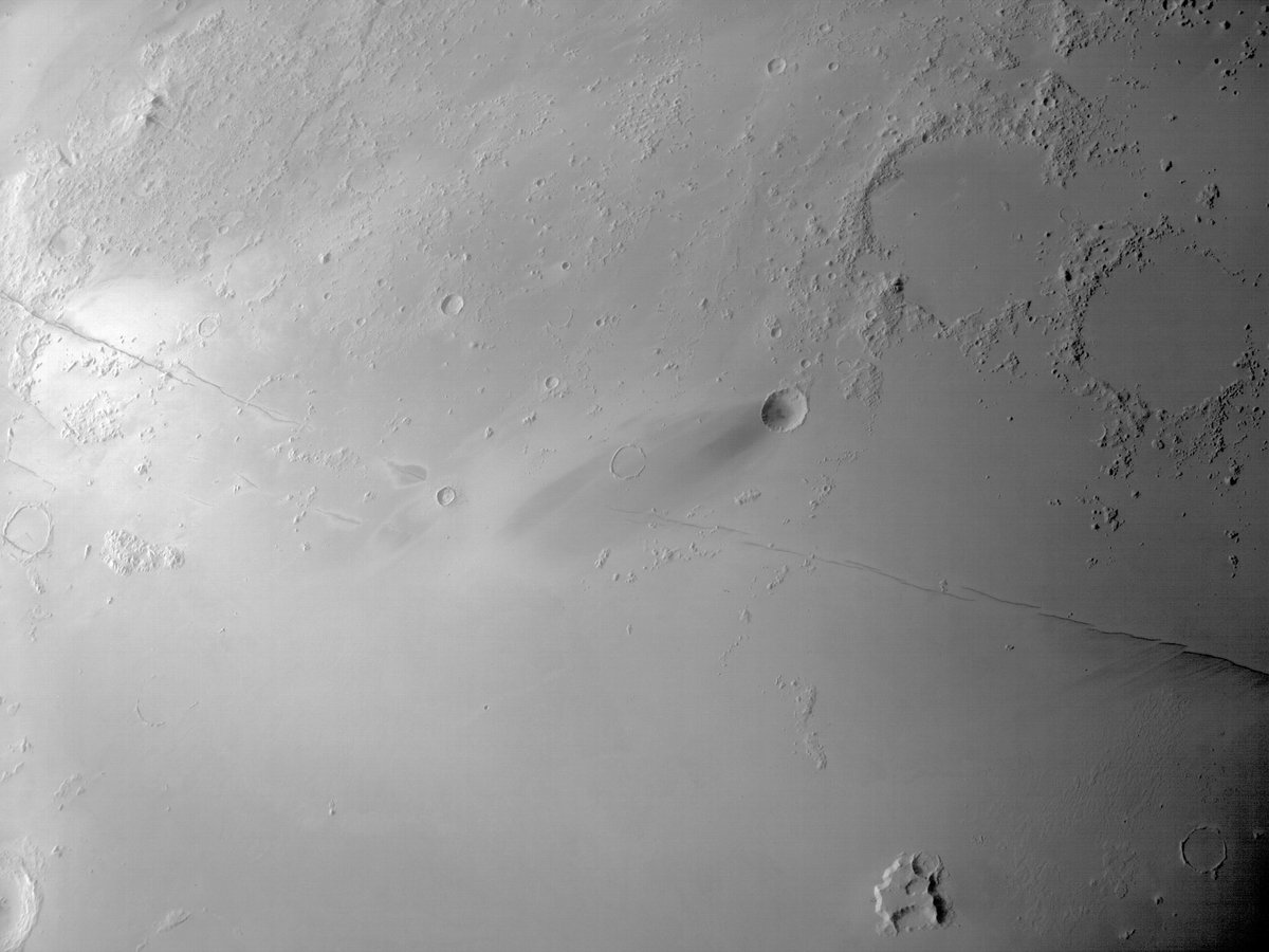 On 15 March 2021, the Emirates eXploration Imager (EXI) captured a monochromatic image of the Cerberus Fossae, a fracture system that stretches for more than 1,000 km across the Martian surface, with a spatial scale of approximately 180 meters/pixel. #HopeProbe #Marspic.twitter.com/fH6Sb6I12d