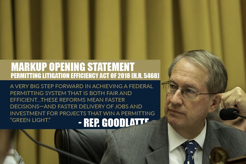 Goodlatte Statement at Markup of Permitting Litigation Efficiency Act https://bit.ly/CCJ2Pu pic.twitter.com/PeRlASRpny