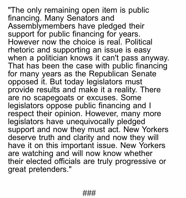 The sham proposals by the Democrats and their community allies protect incumbents and discriminate against parties like the Greens or Libertarians. We need a full public system like Maine and AZ. NYC partial system still results in big money domination. http://www.gpny.org/green_party_calls_proposed_public_matching_funds_proposal_a_sham …https://twitter.com/TweetBenMax/status/1112131896396472320 …