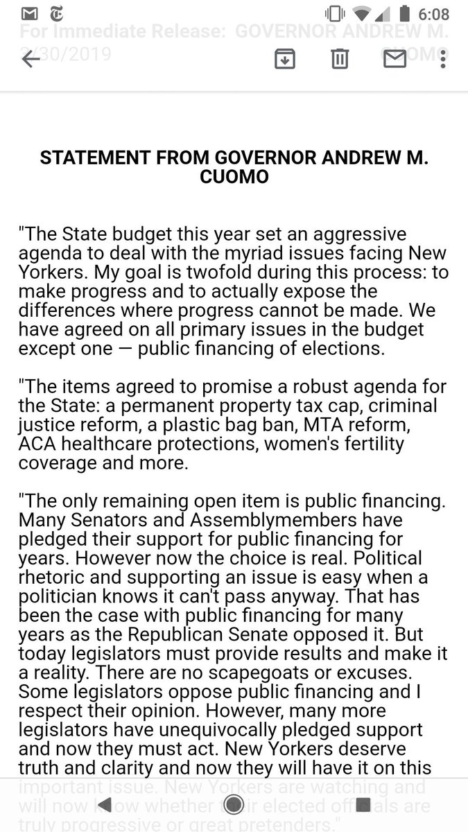 The sham proposals by the Democrats and their community allies protect incumbents and discriminate against parties like the Greens or Libertarians. We need a full public system like Maine and AZ. NYC partial system still results in big money domination. http://www.gpny.org/green_party_calls_proposed_public_matching_funds_proposal_a_sham …https://twitter.com/jessemckinley/status/1112116588625432578 …
