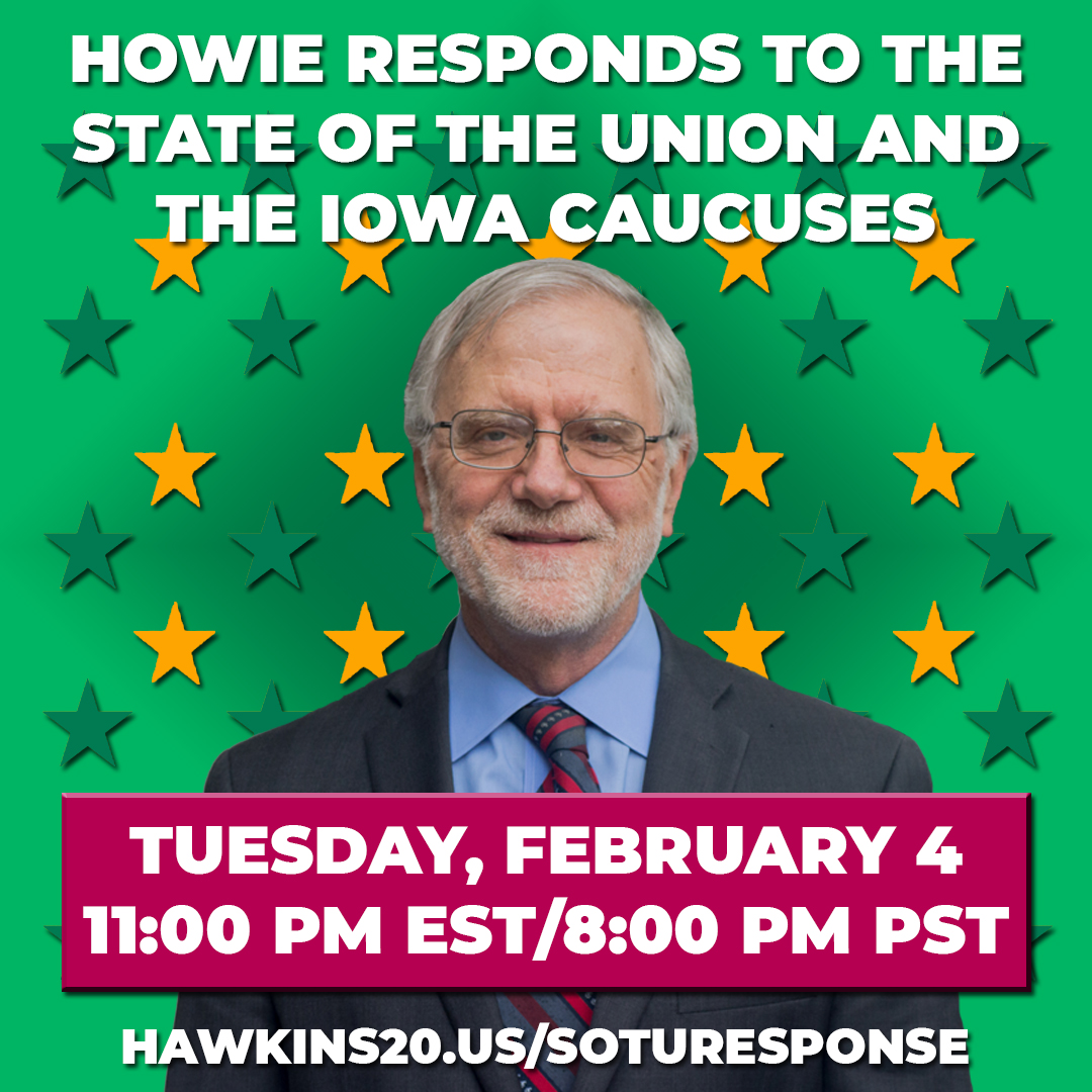 Tomorrow night I will be livestreaming a response to both Trump's State of the Union and the Iowa Caucuses. Head over to my Facebook page or use the link below to join me tomorrow night. Tuesday, February 4 11:00 PM EST/8:00 PM PST https://hawkins20.us/SOTUresponse pic.twitter.com/cez89P4G0P