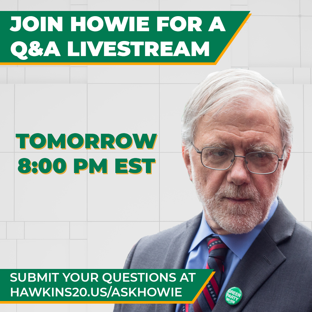 Join us tomorrow night for another Question and Answer Livestream! Howie will be live at 8:00 PM EST to give a campaign update and answer supporter questions. Because of the large number of questions we recieve, please submit your question at https://hawkins20.us/AskHowie/ pic.twitter.com/FhZqpQugAh