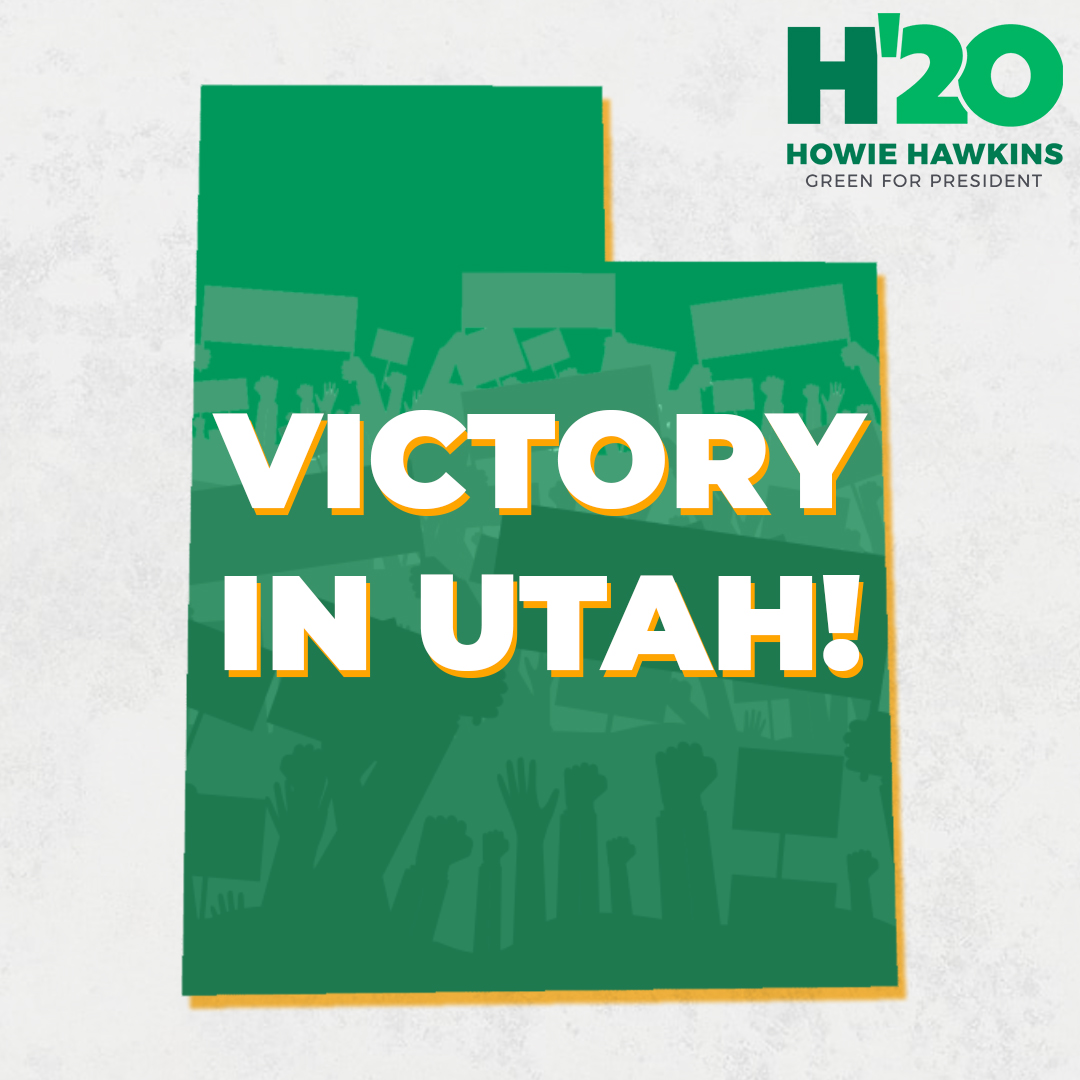 Thank you voters in OH, NM, and UT for carrying us to victory in their primaries! With these three wins today, we have won 11/12 state primaries and are 42% of the way to securing a majority of the pledged Green nominating delegates. Track our progress at https://howiehawkins.us/path-to-the-nomination/ …pic.twitter.com/xzUQNE71Dz