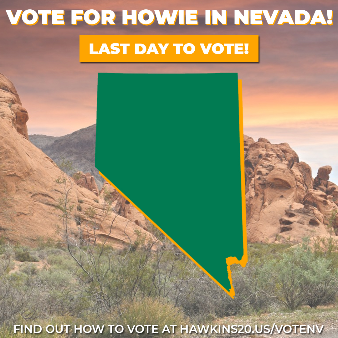 Today is the last day to vote for Howie in Nevada! If you are a registered Green in the State of Nevada you still have time to help carry us to victory and closer to securing the Green nomination! Find out how to vote at https://hawkins20.us/VoteNV pic.twitter.com/dunF72u5V3