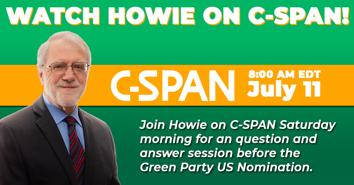 Please ask Howie about the voter suppression, conflict of interest w/in his campaign and how his campaign manager discounts corruption as "winning". The primary is invalid & Greens are coming back for our party.