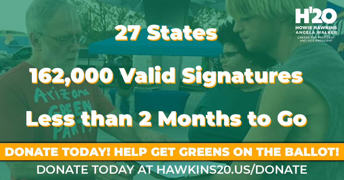 Keep working towards the goal Howie even though there are no Green reps near me I hope third parties bust the system.