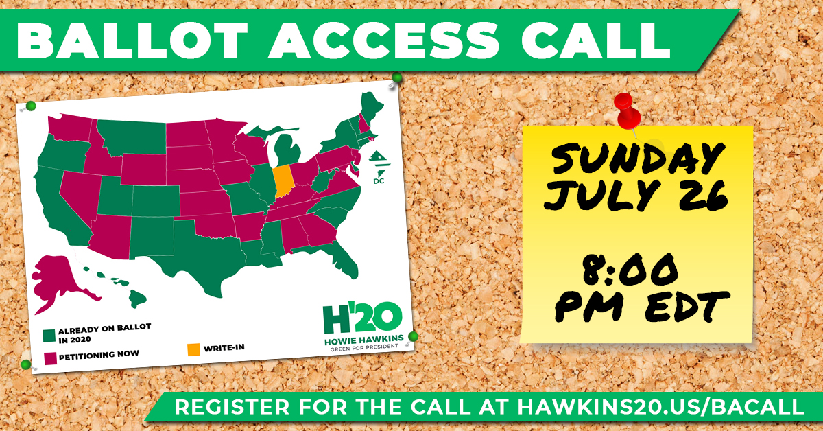 Join H'20 National Ballot Access Coordinator Brendan Phillips for a Town Hall about our #BallotAccess drive and how you can help get Greens on the ballot around the country.