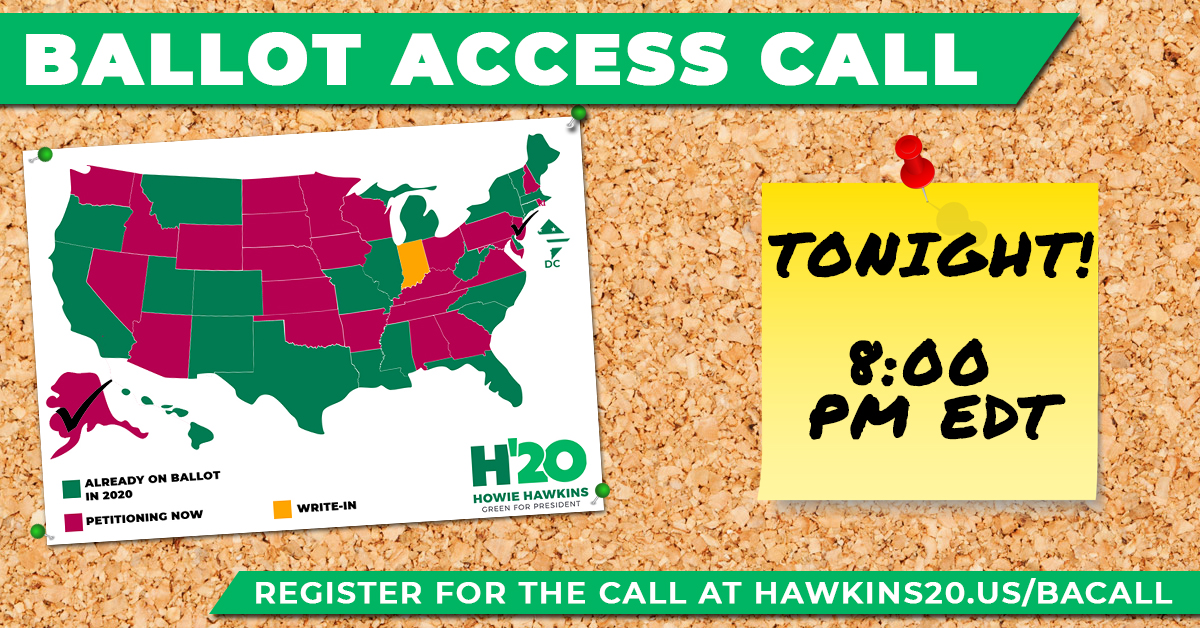 Join us TONIGHT for a Ballot Access Town Hall! H'20 Ballot Access Coordinator Brendan Phillips will give updates on our ballot access drive and tell you how to help us get on the ballot around the country. Tonight 8:00 PM EDT Register for the call at https://hawkins20.us/BACall pic.twitter.com/hkG0LWr7ja