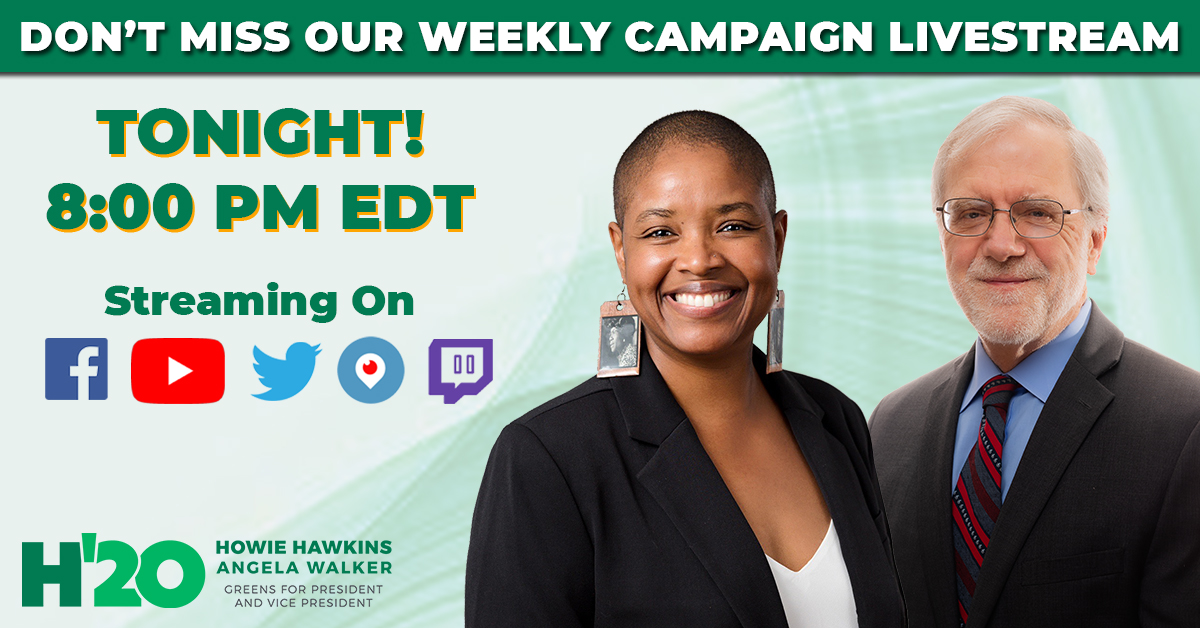 2020 Green Party nominee for President, running w/ @AngelaNWalker. Help build the Green New Deal today: http://hawkins20.us/contribute  Tweets by staff.