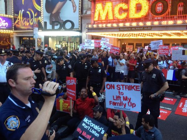 .@strongforall: Workers doing whatever it takes. #StrikeFastFood NYPD moving in to arrest. MT $15 min wagepic.twitter.com/mV45JUDxzJ
