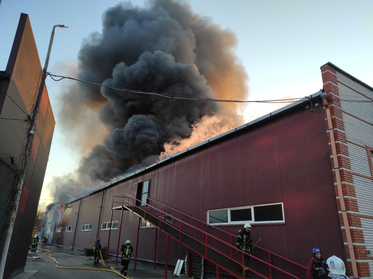 Також неподалік загорівся трав’яний настил площею 5000 м² і склад, площа пожежі — 10 000 м²pic.twitter.com/C6BSvopnIa