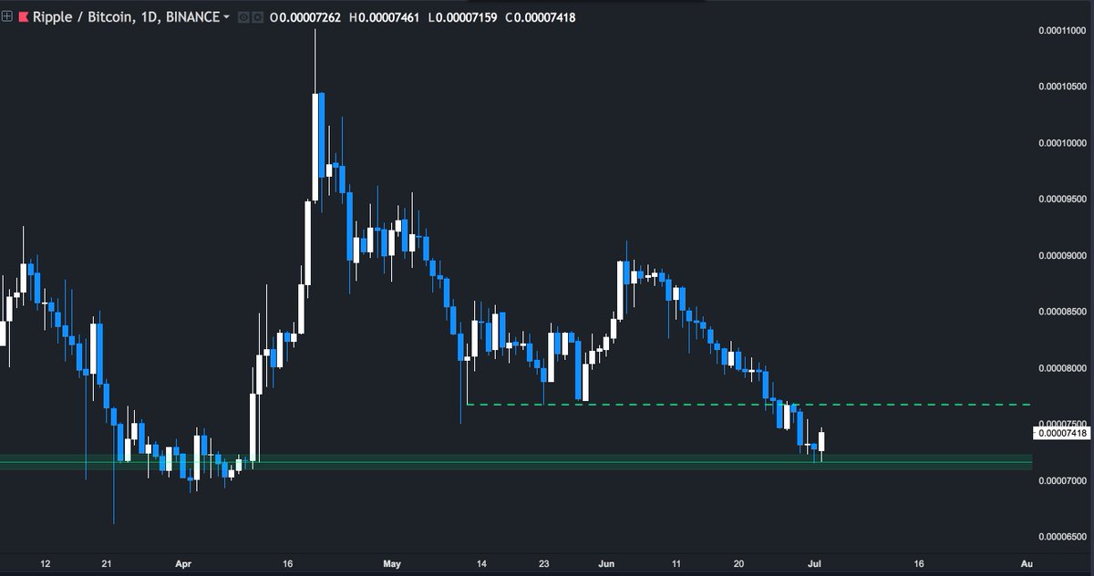 $XRP One of the few Mex alts that hasn't substantially pumped yet. • Bounced off the equilibrium of strong demand • Tweezer bottoms turned into a bullish engulfing Not as confident as I was for ADA, BCH, and TRX, but taking a position anyway.pic.twitter.com/ESwgTFndRT