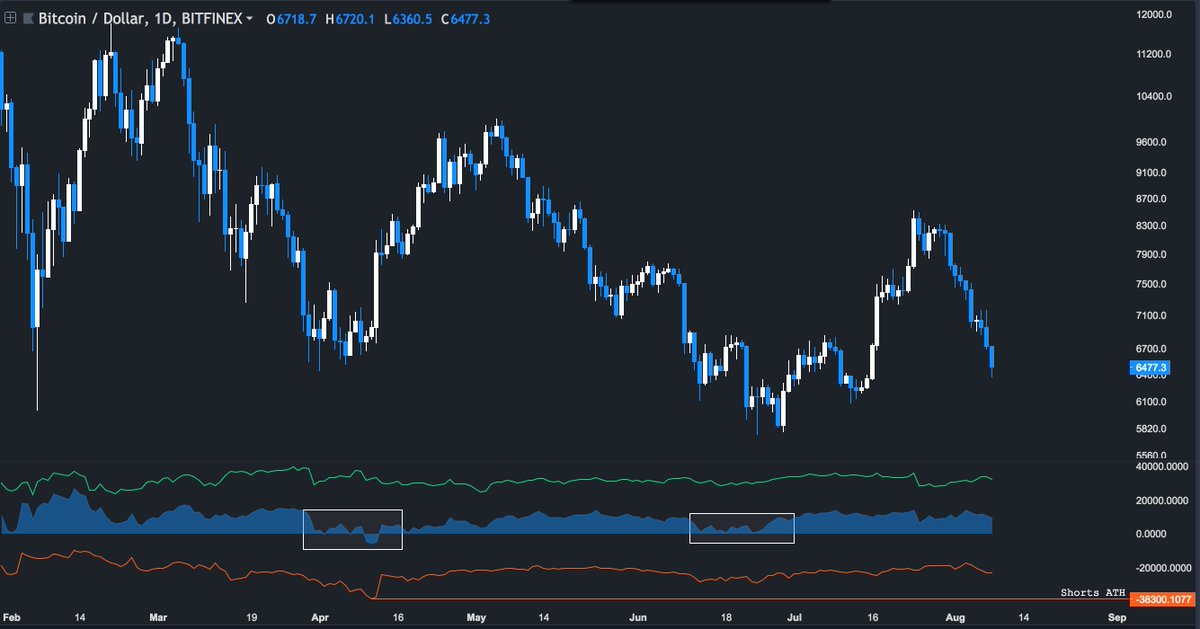 $BTC Longs/Shorts Even though shorts are going parabolic on LTFs, they're not high enough to pull us out of this downtrend, a deadcat bounce to 6800s at best. More important than shorts or longs solely, is their difference. Notice how the last two bottoms were around parity.pic.twitter.com/aD2lpD8nAx